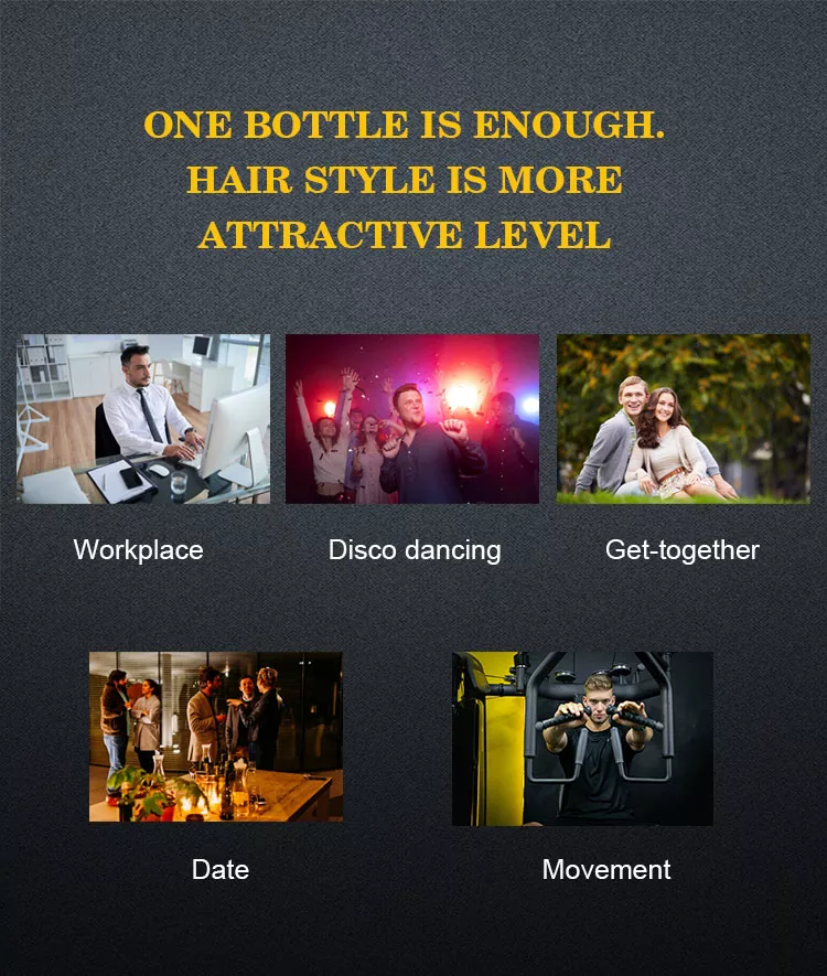 Gelul pentru coafuri ultra fin fără sudură pentru bărbați Wilson se referă la efectul de aranjare și modificare al produselor cosmetice, pulverizate sau aplicate pe păr, evaporarea solventului și uscarea pe păr pentru a forma o peliculă transparentă, astfel încât fibra capilară să se întărească și să mențină forma scopului pentru a satisface nevoile diferitelor coafuri.